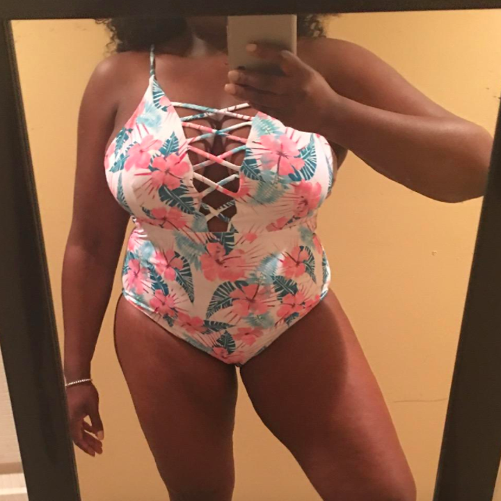 Promising review: "I am in love with this swimsuit! I accept a pretty big chest, and the adjustable straps really assistance me keep everything in! It'southward so flattering and I actually like the way it looks on me. The print is beautiful and I can't wait to show this off at the beach this summertime!" —Samm