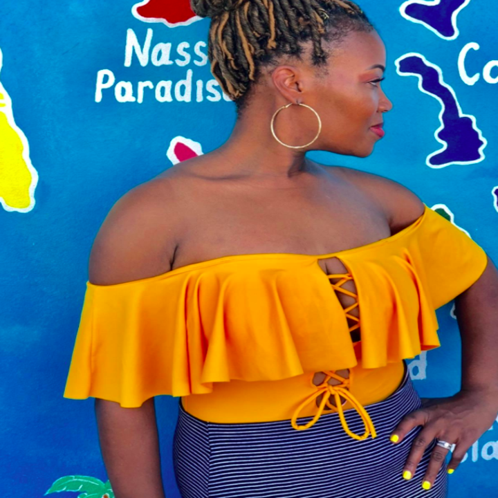 33. An off-the-shoulder suit perfect for lounging poolside, living your best Hakuna Matata life. Worries? You lot take none! For the residuum of your days!