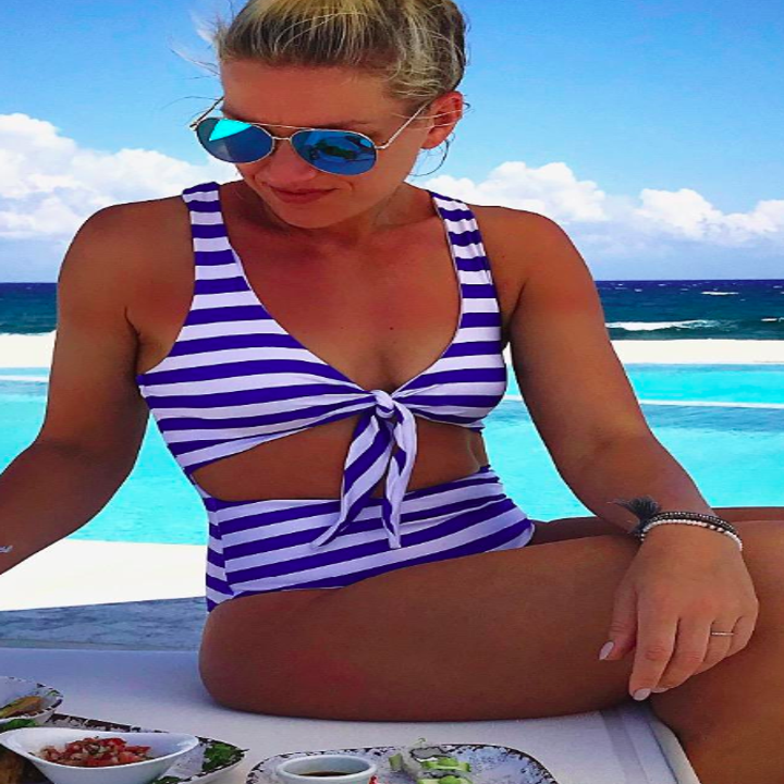 14. A high cut, low back swimsuit bachelor in a bunch of different phrases and colors. Upcoming bachelorette party? I highly recommend grabbing a arrange that has "bride-to-be" splayed across your chest for an outfit more iconic than any customized silk robe.