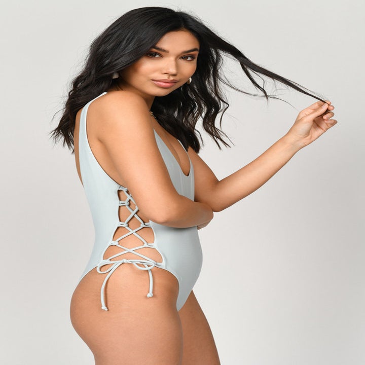 18. An off-the-shoulder lace-upwardly suit y'all tin can pair with whatever bottom and BAM! No 1 will know you're really wearing swimwear as yous stroll forth the boardwalk.