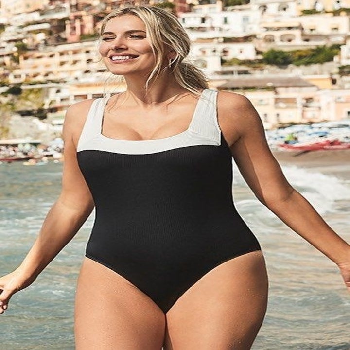 35. A color-blocking swimsuit designed with congenital-in cups, adjustable straps, and Italian-fabricated fabric that is, in a word, HEAVENLY. It'due south even made from ~recycled~ materials! 🌎